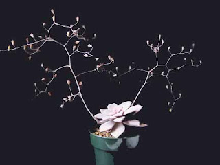 The first response of many succulent hobbyists is to say, "You mean that 'Mother of Thousands' weed?" But that's not quite fair. It can be quite charming in its prime. And though it can become a greenhouse weed and it could become very invasive in welcoming climatic zones, in our area it won't overwinter outside. Therefore last year we decided to use it as an annual and it did beautifully, adding an interesting feature to an otherwise drab area. The winter weather has killed all those but - not to fear - we have more, wintering away in a corner of the greenhouse - hopefully as far away from other potted plants as possible....Well, one can hope!